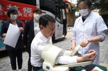 5月14日9點,省血液中心的愛心獻血車駛進山師東路4號院內。為避免人員聚集,預防獻血過程中可能出現的交叉感染,前來獻血的黨員干部職工在醫務人員的引導下,佩戴口罩、填表登記、測溫測壓、檢查血型、抽取血液,現場秩序井然、有條不紊。