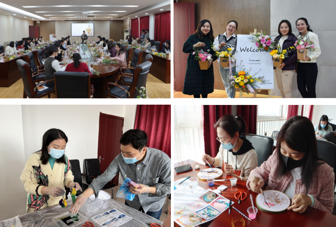 2月28日至3月7日,學院組織開展“與花相伴 綻放芳華”插花公益沙龍、“妙手指尖 非遺瑰寶”掐絲琺瑯彩手工體驗沙龍、“自然而然,布里生花”扎染非遺體驗微沙龍等體驗活動,放松廣大女教職工身心。