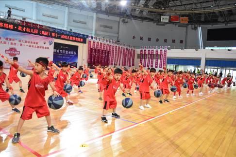 隨后,劉秀華宣布比賽正式開始。銀座幼教濟南片區百名幼兒以一場大型籃球操表演吹響比賽號角。