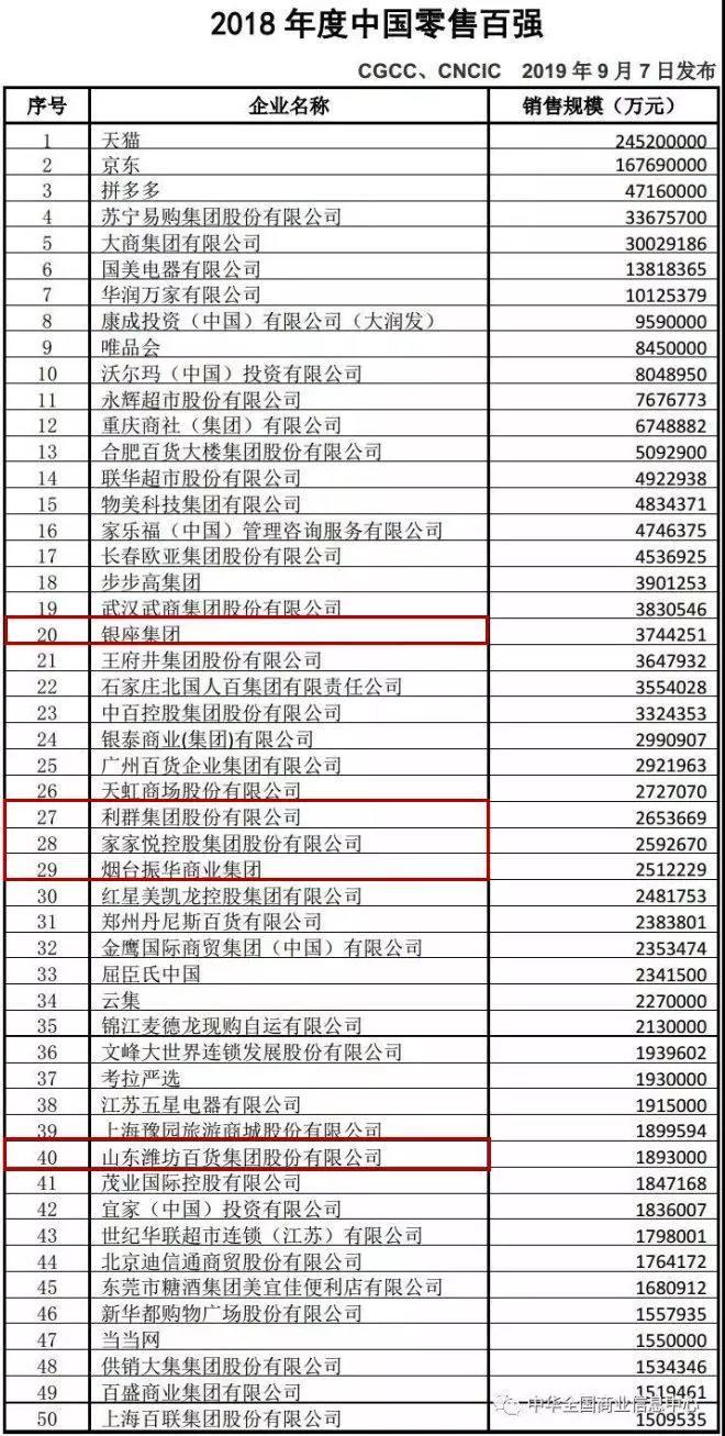 9月7日,在重慶舉辦的第十九屆亞太零售商大會暨國際消費品博覽會上,中國商業聯合會、中華全國商業信息中心發布2018年度中國零售百強名單,銀座集團以超370億元的銷售規模位列全國二十、山東首位。