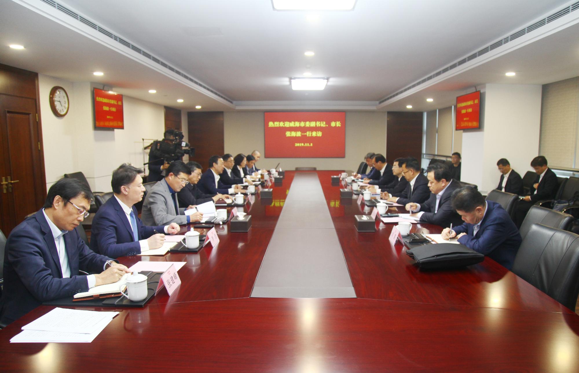 11月1日,省商業集團有限公司(以下簡稱魯商集團)黨委書記、董事長兼省文旅集團董事長高洪雷,在濟南會見來訪的威海市委副書記、市長張海波一行,雙方就鄉村振興、文化旅游、大健康等領域合作進行深入交流。魯商集團黨委副書記、總經理凌沛學,副總經理姜國棟,威海經區黨工委書記、管委主任呂曉東,威海市政府秘書長王清參加會見。