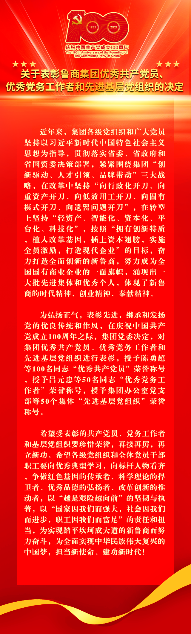 <font color=red>關于表彰集團優秀共產黨員、優秀黨務工作者和先進基層黨組織的決定</font>