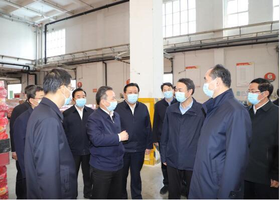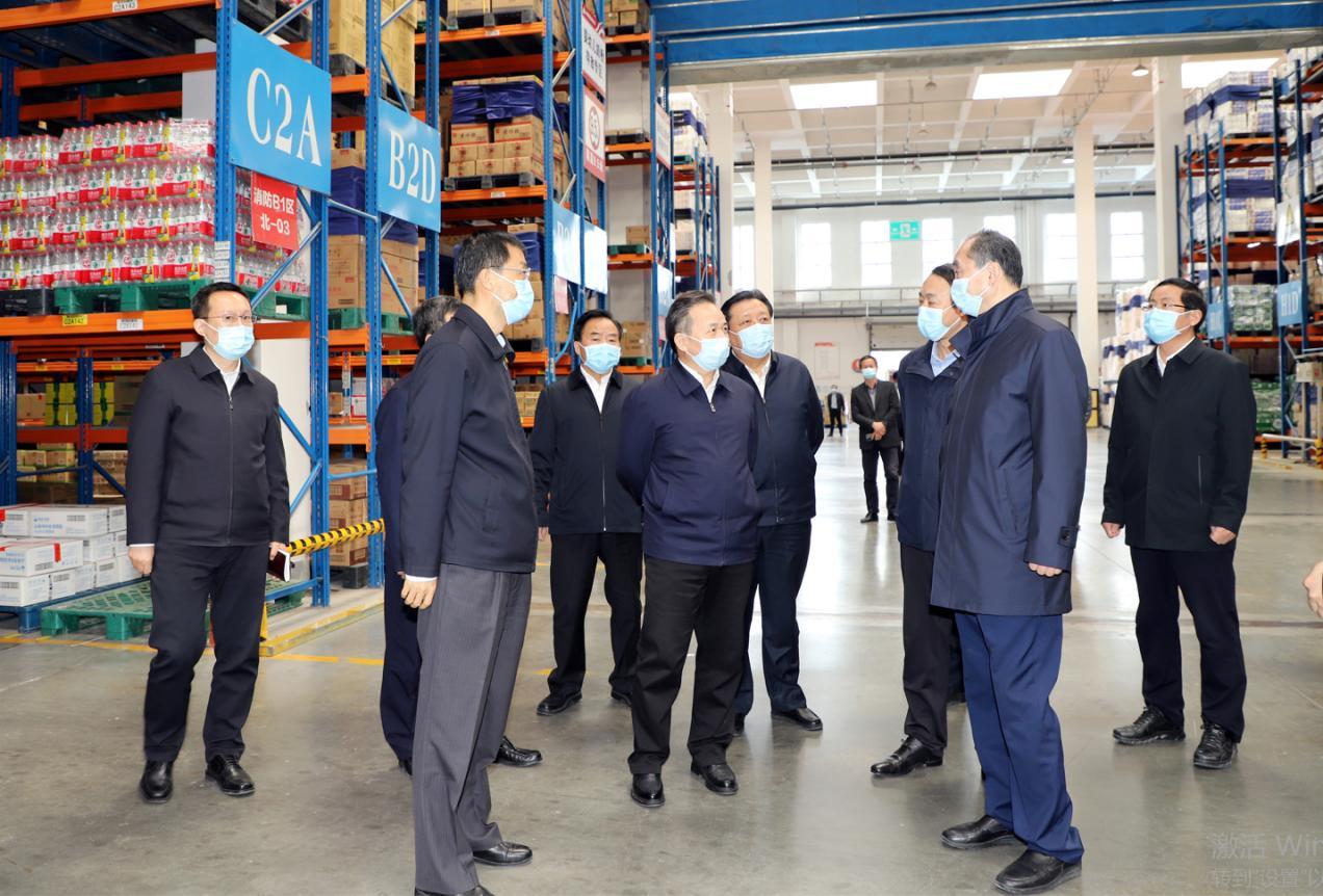 4月3日,省委書記李干杰來到魯商集團銀座配送中心調研疫情防控與市場保供工作,省委常委、濟南市委書記劉強,濟南市委副書記、代市長于海田,魯商集團黨委書記、董事長兼山東文旅集團董事長高洪雷,魯商集團首席電子商務官、銀座集團黨委書記、董事長布廷現陪同。