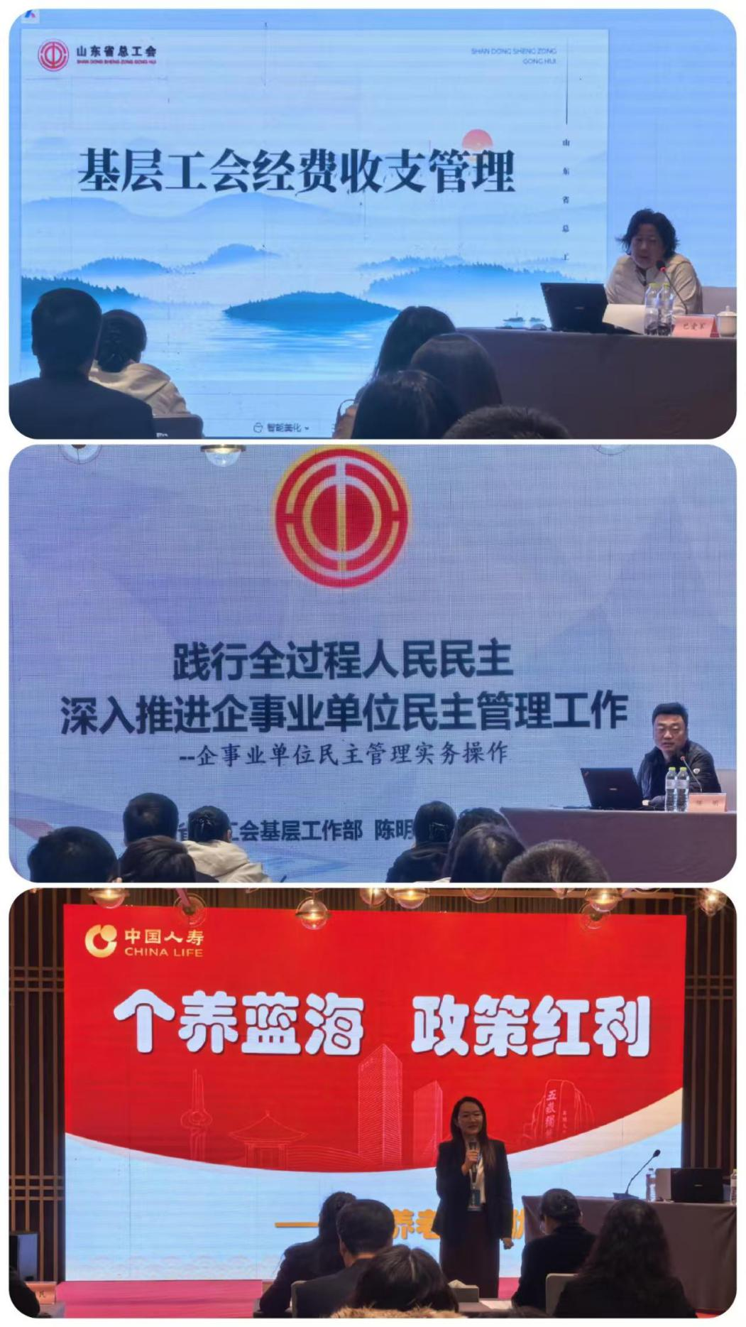 培訓(xùn)班邀請(qǐng)省總工會(huì)經(jīng)費(fèi)審查委員會(huì)辦公室主任、一級(jí)調(diào)研員巴愛軍講解了工會(huì)財(cái)務(wù)和經(jīng)審工作實(shí)務(wù),省總工會(huì)基層工作部負(fù)責(zé)人陳明講解了工會(huì)基層工作實(shí)務(wù),并邀請(qǐng)專家解讀了個(gè)人養(yǎng)老金制度等有關(guān)政策,通過案例剖析、互動(dòng)討論等方式,進(jìn)一步提升了工會(huì)干部的理論水平和業(yè)務(wù)能力。培訓(xùn)還組織了紅色教育基地現(xiàn)場(chǎng)教學(xué),開展了“我為群眾辦實(shí)事”、推進(jìn)美德山東和信用山東“進(jìn)企業(yè)”主題研討,引導(dǎo)各級(jí)工會(huì)踐行社會(huì)主義核心價(jià)值觀,提升服務(wù)職工質(zhì)效。銀座集團(tuán)、福瑞達(dá)、山東城發(fā)、魯商科技、魯商服務(wù)、山東商院、齊魯醫(yī)藥、銀座幼教等8家單位工會(huì)圍繞勞模工匠選樹、民主管理、全員創(chuàng)新、服務(wù)職工、黨建引領(lǐng)、就業(yè)促進(jìn)、素質(zhì)提升等方面作了交流發(fā)言。