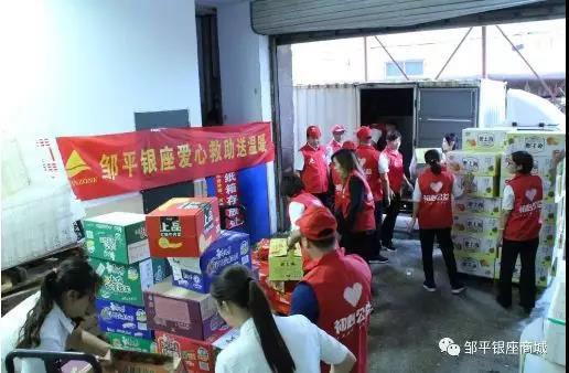 鄒平銀座迅速成立賑災行動小組,了解到臨池鎮受災情況后,8月12日,全體黨員和管理人員緊急從超市籌措調集礦泉水、方便面、火腿腸、面包等受災民眾迫切需要的生活必備物品,冒雨裝車運往臨池鎮災民臨時安置點并發放到位。