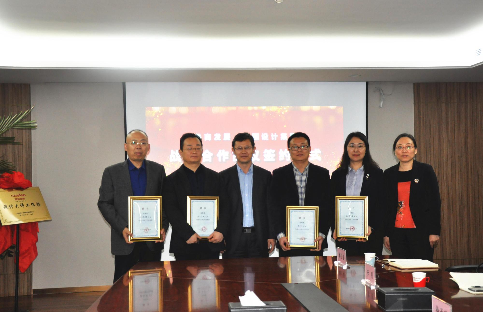 隨后的魯商發展設計大師工作站揭牌儀式上,張全立與同圓設計四位專家共同揭牌。徐濤和李璐為四位專家頒發了聘任證書。