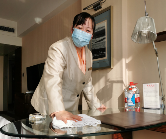 她時常和同事說,“在這個特殊時期,我們雖然不能像醫護人員一樣在一線沖鋒陷陣,但我們依然能夠通過自己的努力消除大家不安的心理,給在外的每一個賓客提供安全、舒適的港灣”。疫情當前,曹亞平通過自己的堅守與擔當,詮釋出平凡崗位中榜樣的力量。