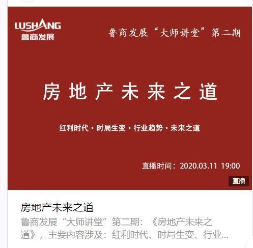 3月11日,魯商健康產業發展股份有限公司(簡稱魯商發展)“大師講堂”第二期成功舉辦。此期課程邀請到山東世聯怡高物業顧問有限公司總經理朱江作了題為《房地產未來之道》的分享。