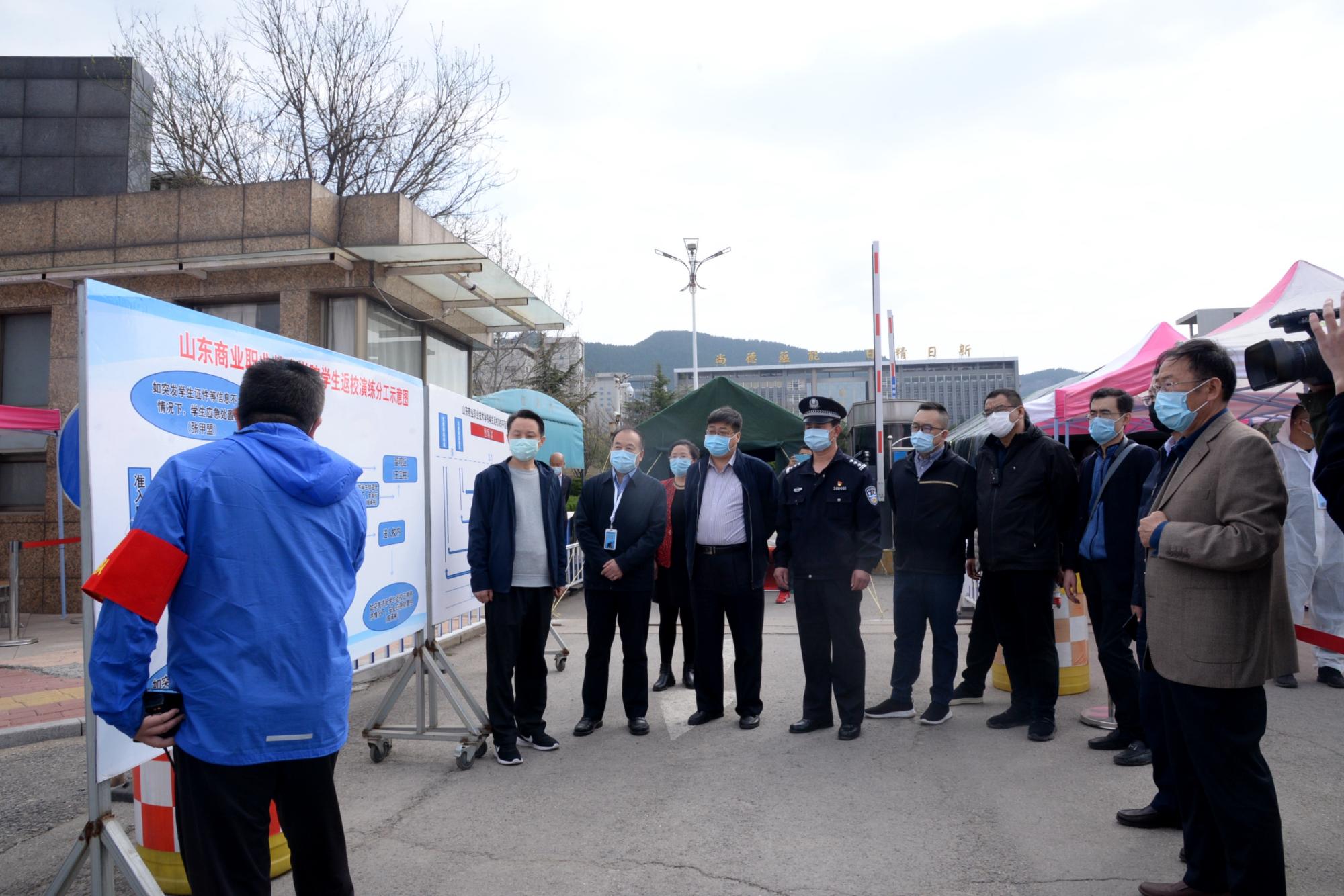 為科學、有效做好開學后疫情防控工作,提升學校疫情防控與應急處置能力,3月24日下午,山東商院舉行疫情防控模擬演練。學校領導班子成員出席活動并對應急處置關鍵環節進行指導,省商業集團有限公司安全管理部、濟南市歷城區彩石派出所相關負責人觀摩演練。