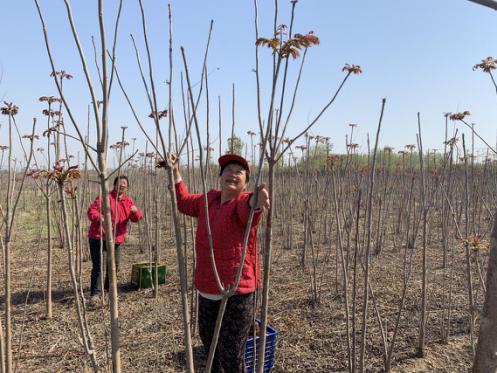 魯商發展泰安公司根據韓家崗村實際情況,經多方考察后,于2019年10月將“四季椿”項目確定為公司精準扶貧項目,為項目注入資金,支持村級發展特色種植產業走上脫貧致富路。“四季椿”栽植苗木9萬余株,種植面積逾65畝,現長勢喜人。