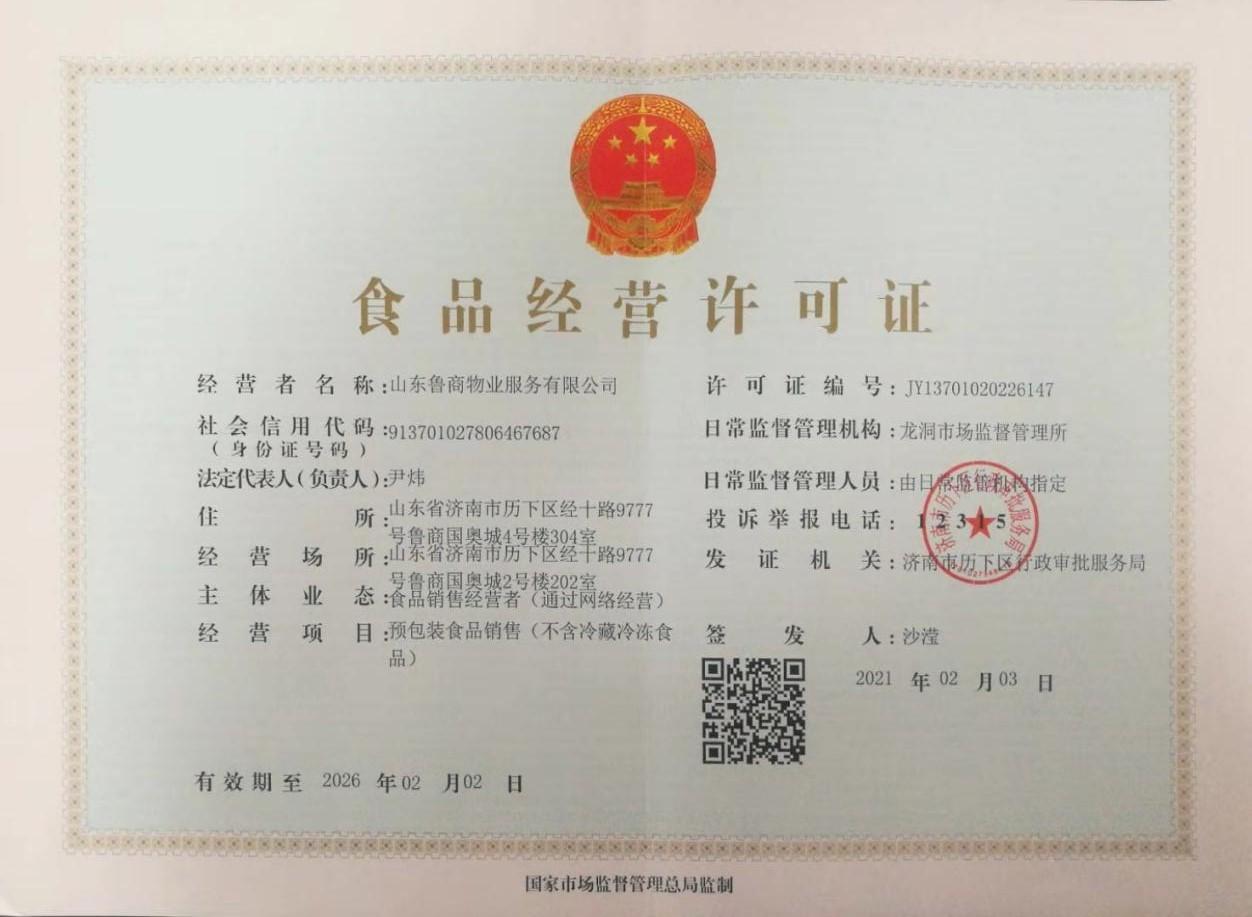 為貫徹公司改革轉型創新發展精神,為業主提供更全面的增值服務,魯商物業于近日成功辦理食品經營許可證。