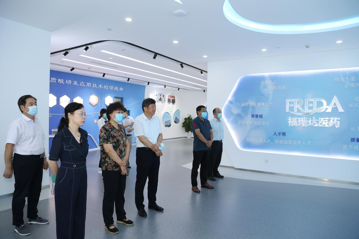 調研組實地參觀福瑞達展廳,了解福瑞達歷史沿革、轉型升級、產學研協同創新及業務拓展情況。賈慶文表示,福瑞達是透明質酸研發與應用技術的領跑者,在醫藥和化妝品領域擁有領先的技術和完整的產業鏈,擁有3個國家級和12個省級科研平臺,在醫藥領域打造了明仁、潤舒、潤潔,在化妝品領域打造了頤蓮、璦爾博士、善顏等多個知名品牌。調研組一行詳細詢問福瑞達商業模式、產品價位、市場發展等詳細情況,對公司敢于突破創新表示充分肯定,對在全省醫養健康產業發展中作出的貢獻表示贊賞,要求福瑞達加大科技創新和體制機制創新力度,把握機遇,快速把產業做大做強,為健康強省建設作出新貢獻。