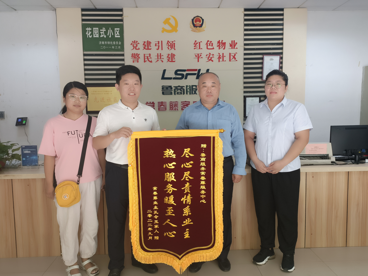 “感謝你們緊急時刻的出手相助,幫我找到走失的父親。謝謝你們。”近日,業主孔先生來到魯商服務濟南城市公司常春藤項目服務中心,贈送了一面印有“盡心盡責情系業主 熱心服務暖至人心”的錦旗,感謝常春藤服務中心員工深夜找尋家中走丟的老人。