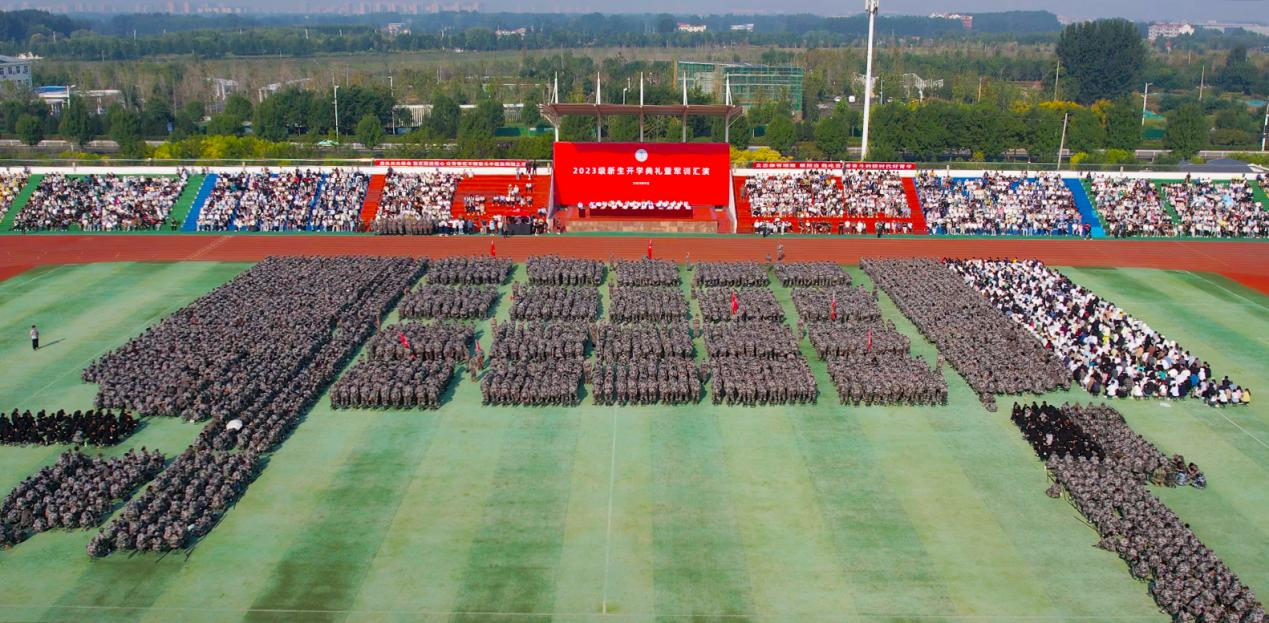會上,韓冰代表學校黨委對2023級全體新同學表提出期望與寄語。黨委委員、副校長耿磊宣讀表彰“優秀方隊”“優秀教官”“軍訓標兵”的決定,主席臺領導為獲獎代表頒發榮譽證書。二級學院院長為新生代表佩戴校徽。師生代表作現場發言。