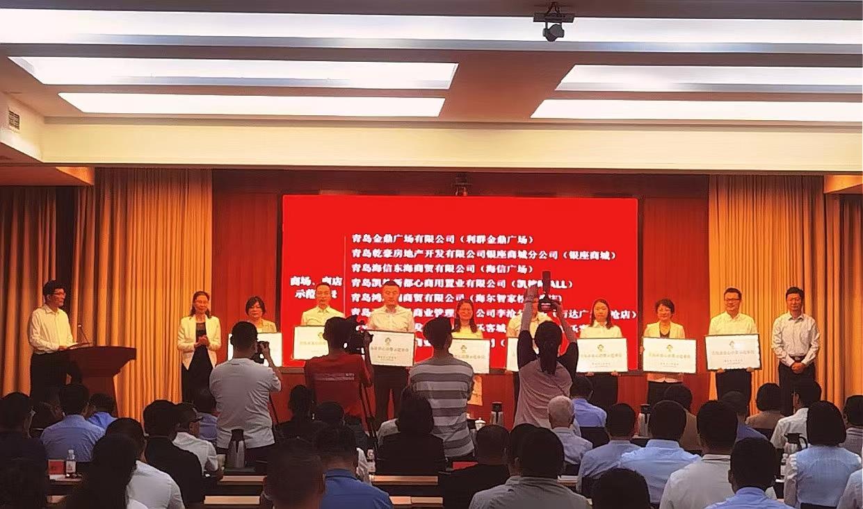 近日,青島市召開“優環境 促消費”放心消費創建觀摩推進會,對銀座青島商城店等獲評“2022年度青島市放心消費示范單位”的企業主體進行集中授牌。