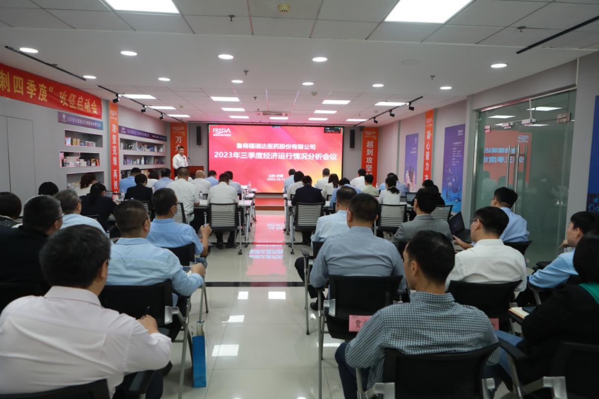 10月11日,福瑞達召開三季度經濟運行分析會,傳達落實魯商集團三季度經濟運行分析會精神,總結分析前三季度工作,查找問題和不足,動員全體干部職工進一步堅定信心、乘勢而上,以沖刺決勝之勢圓滿完成全年目標任務。福瑞達黨委書記、董事長賈慶文出席會議并講話,黨委副書記周明主持會議。