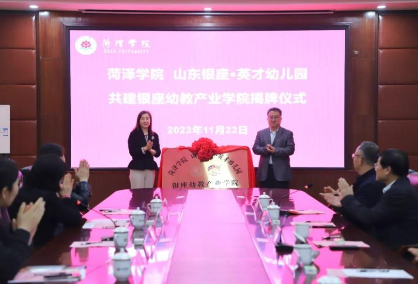 近日,銀座幼教與菏澤學院合作協議簽訂儀式舉行。銀座幼教黨委書記、董事長袁霞與菏澤學院黨委委員、副校長孟令美共同為菏澤學院銀座幼教產業學院揭牌。