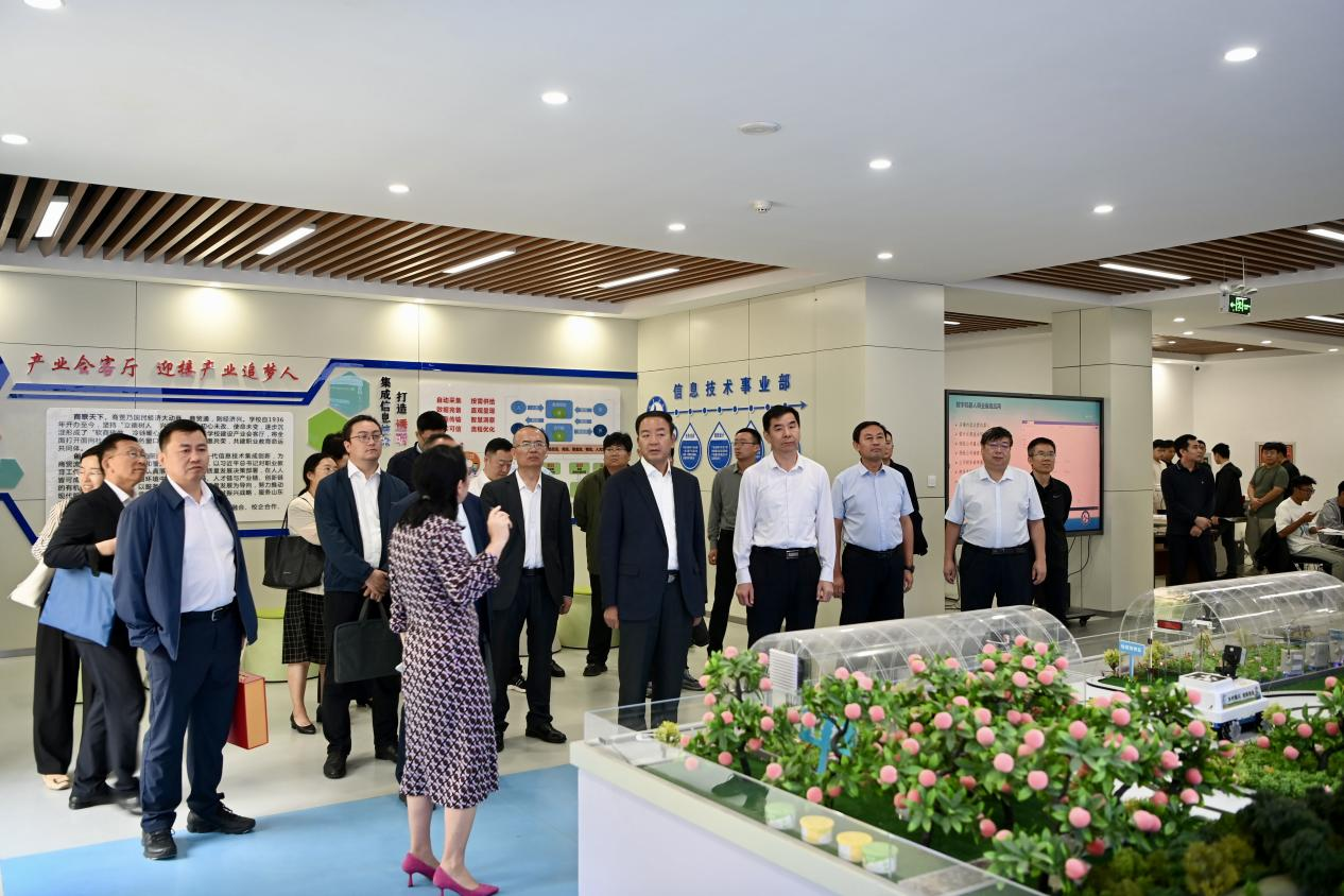 在山東商職學院,張世珍一行參觀了產業會客廳、智慧冷鏈物流實訓基地、文化創意產業學院實訓基地,了解學校辦學理念、辦學特色,以及學校在校企共同體建設、教育教學、專業發展與服務社會等方面的情況。隨后,山東商職學院與甘肅交通職業技術學院簽署了對接幫扶協議,兩校將發揮各自優勢,實現資源共享、優勢互補,共同推動物流類專業(專業群)職業教育發展。
