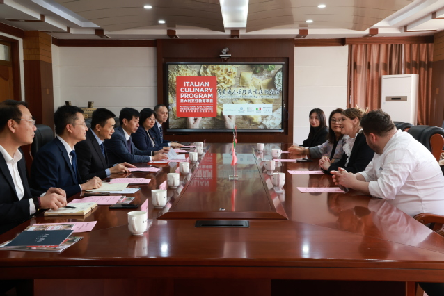 青島酒店管理職院校長姜玉鵬介紹了學校專業特色、人才培育和國際化辦學情況。他表示,意大利烹飪教育項目有利于促進雙方烹飪文化與教育的深度交流,拓寬師生國際視野,提升烹飪制作技藝,豐富餐飲感知體驗。希望以此次活動為契機,進一步深化合作,強化雙方青年學子在飲食文化領域的互學互鑒。