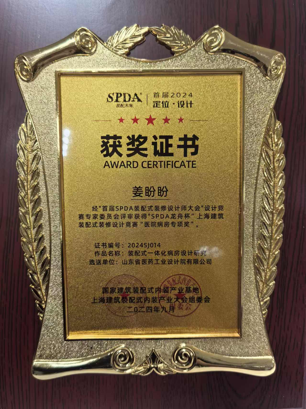 近日,省醫工院“裝配式一體化病房設計研究”主題設計作品榮獲首屆“SPDA龍舟杯”裝配式裝修設計競賽醫院病房專項設計獎,作品主創人員、建筑所高級工程師姜盼盼被國家建筑裝配式內裝產業基地簽約為認證設計師。