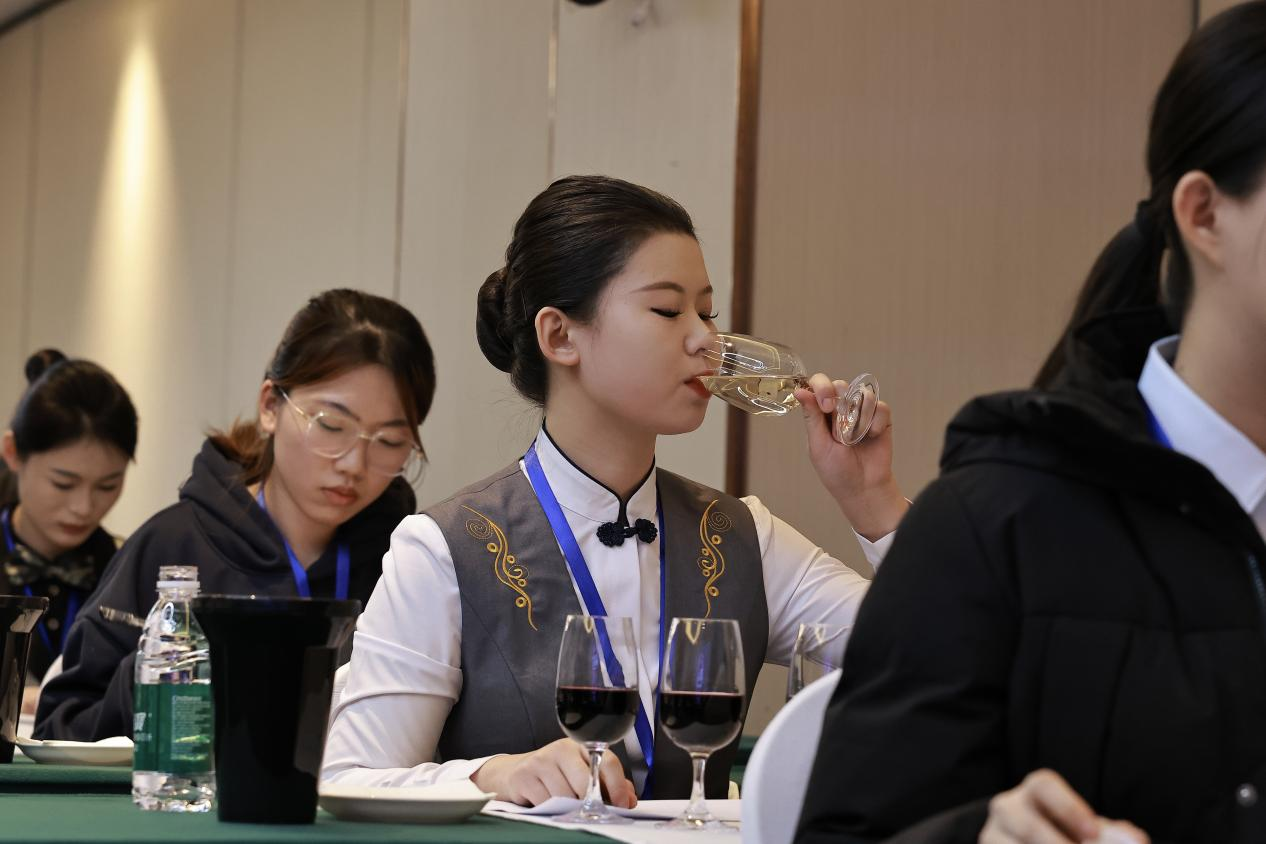 本賽項為團體賽,由酒水品鑒與侍酒服務、雞尾酒調制與服務及綜合能力測評三個模塊組成。在酒水品鑒與侍酒服務環節,選手憑借敏銳的嗅覺和味覺,準確辨別出了多款酒水,山東城市服務職院選手以其規范優雅的操作流程和熱情周到的服務態度贏得了評委的好評;雞尾酒調制與服務模塊中,選手們創意爆棚,自創雞尾酒口感獨特、外觀精巧,搭配精彩的調制演繹及專業服務姿態,令人眼前一亮;在綜合能力測評的部分,學校選手憑借扎實理論根基斬獲佳績,充分彰顯了自身的知識素養。