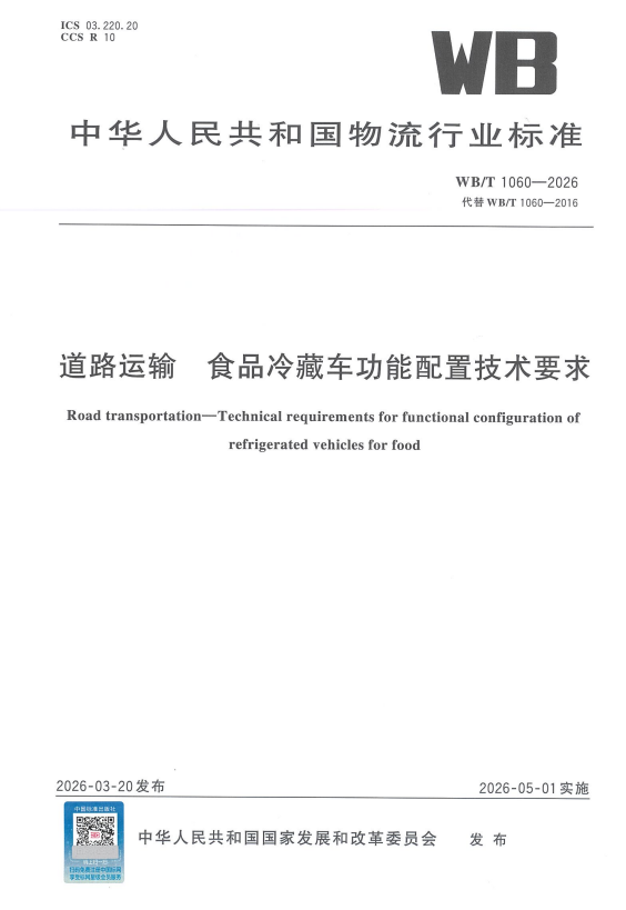 《道路運輸 食品冷藏車功能配置技術要求》規定了食品冷藏車的分類與標志、核心部件及行駛溫度記錄儀等關鍵技術要求,并給出了常見食品適用冷藏車類型的參考附錄,為冷鏈運輸企業提供科學、統一的裝備配置指南,確保冷鏈食品在運輸過程中的溫度控制與質量安全。