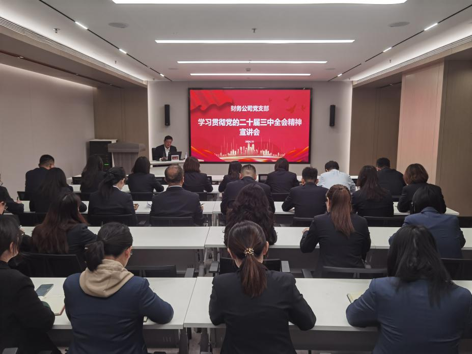 為深入學(xué)習(xí)貫徹黨的二十屆三中全會精神,引導(dǎo)全體黨員干部解放思想、奮發(fā)進取,全面推動各項任務(wù)落地落實,10月21日,財務(wù)公司舉辦學(xué)習(xí)貫徹黨的二十屆三中全會精神宣講會,黨支部書記徐峰作專題宣講。